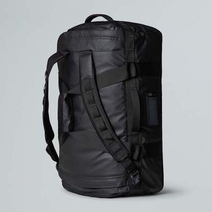 - Our iconic Base Camp Duffel is the inspiration for the new Voyager. It's just as handy but weighs less and has even more pockets to store your stuff with a focus on travel rather than back and beyond expeditions. You can carry it as a backpack or a duffel. It's got an adjustable and removable divider in the main section, which definitely makes separating clean from dirty easier, and - to avoid frustrated rummaging - there's an external zipped pocket for your passport and phone. It's made from recycled fabric, too.