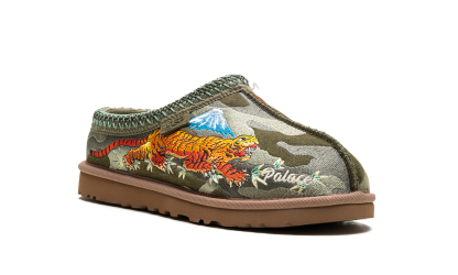 Step into exclusive streetwear comfort with the Tasman Slipper Palace "Burnt Olive Camo". This celebrated collaboration features a classic UGG slipper updated with a Palace camo pattern on the burnt olive suede. The plush wool lining and durable outsole deliver ultimate warmth and a bold aesthetic, perfect for making a statement indoors or out.